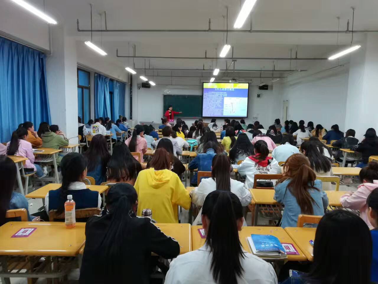 4月25日晚,兰州文理学院外语学院团委及青年志愿者协会联合甘肃玛丽亚妇科医院组织开展的“青春飞扬、健康相伴”女大学生健康知识系列公益讲座在教学楼五楼电教室举行。讲座由甘肃玛丽亚妇科医院青年妇科医生张燕主讲,来自外语学院及青协的女大学生认真聆听了讲座。
