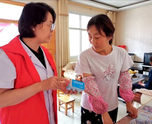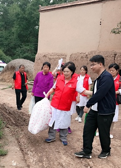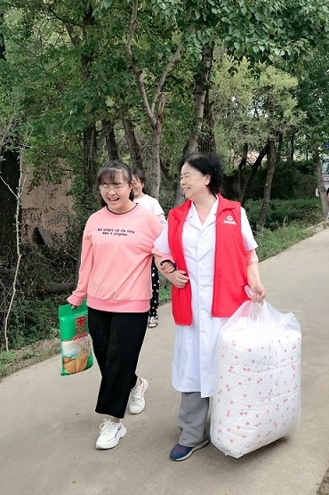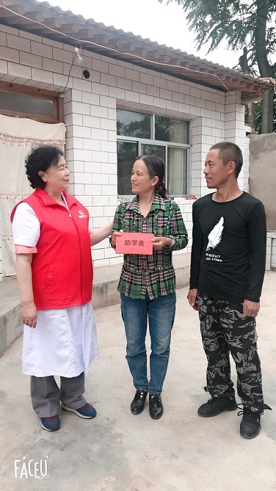 由于受资助的贫困大学生家庭大部分是因病致贫,此次助学公益行玛丽亚医院特地组织了医护团队。有四十年临床经验的中西医结合科孙淑娴主任为受助家庭中的老人进行了查体、听诊、开具了处方,并针对病情送上了药品,随行的护理人员对老人做了简单护理。