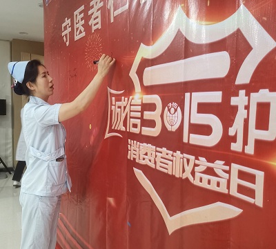 宣誓完毕后,所有医护人员在“3.15”活动背景墙上郑重的签上了自己的名字,这是他们对患者签下的诚信保证书,也是玛丽亚的医务工作者汇聚诚信正能量,传扬社会新风尚最好的见证。