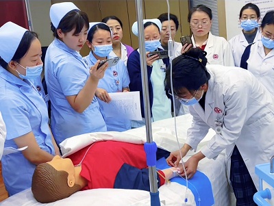 随后,医院的护理人员逐一进行了实操练习,两位护理专家对各学员在实操过程中的要点、难点问题进行一对一指导,经过指导老师手把手示范,学员们充分掌握了静脉留置针的穿刺技巧、无张力贴膜固定法及脉冲式冲管方法、正压封管方法、高举平台固定法等。